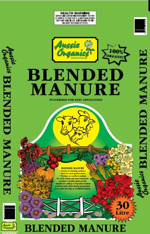 Aussie Organics Multi Mix is a blend of sheep, cow, and chicken manure. This product is finely ground for easy use and serves as a versatile organic fertilizer perfect for trees, shrubs, lawns, vegetables, and flower gardens, though it should be avoided for azaleas, camellias, ferns, and Australian native plants.